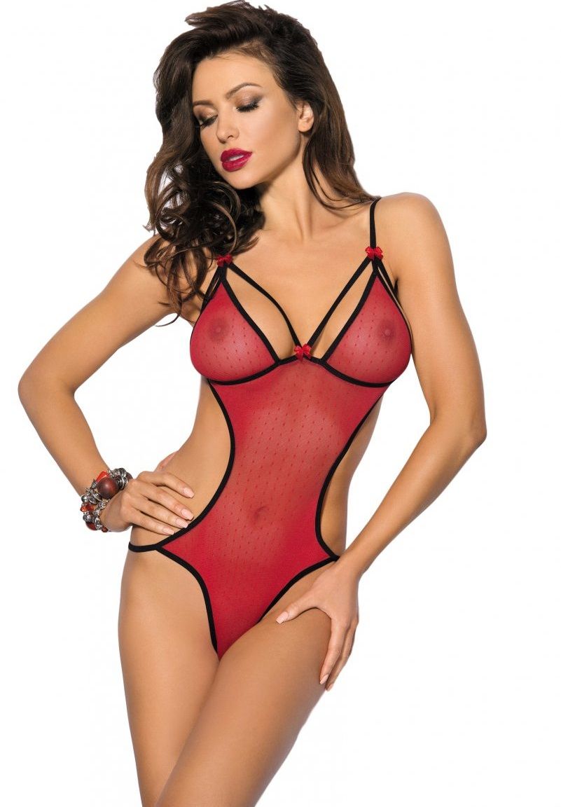 Ажурный кэтсьюит с яркой шнуровкой в области декольте