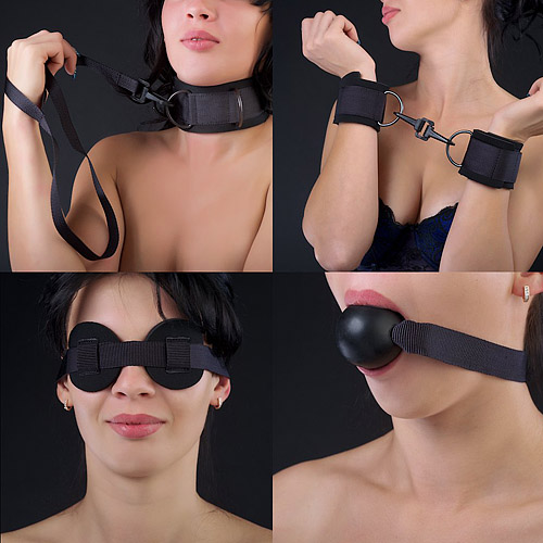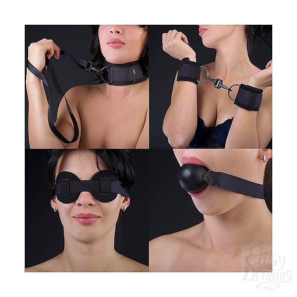 Секс шоп » БДСМ / Фетиш » Наручники / Фиксация » Наручники » Комплект: наручники, кляп-шарик, маска. Цвет черный 7062-1
