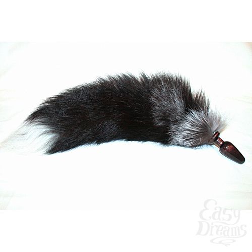 Секс шоп » Анальные игрушки » PonyPlay » Анальная пробка черного цвета с лисьим хвостом чернобурка, 6 см.