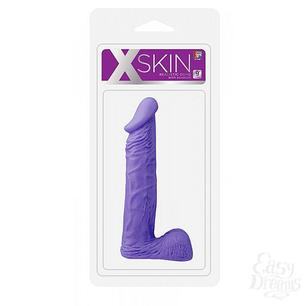 Секс шоп » Фаллоимитаторы » С мошонкой » Фиолетовый фаллоимитатор большого размера XSKIN 9 PVC DONG - 23 см.