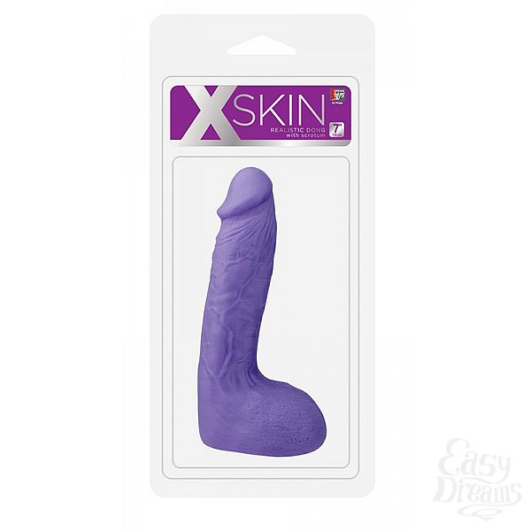 Секс шоп » Фаллоимитаторы » С мошонкой » Фиолетовый фаллоимитатор-массажер XSKIN 7 PVC DONG - 18 см.