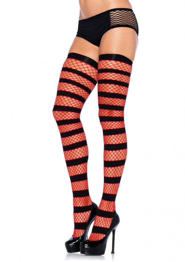 Секс шоп » Эротическое белье » Чулки/Колготки » Чулки » Эффектные чулочки-сетка с чёрными плотными полосками