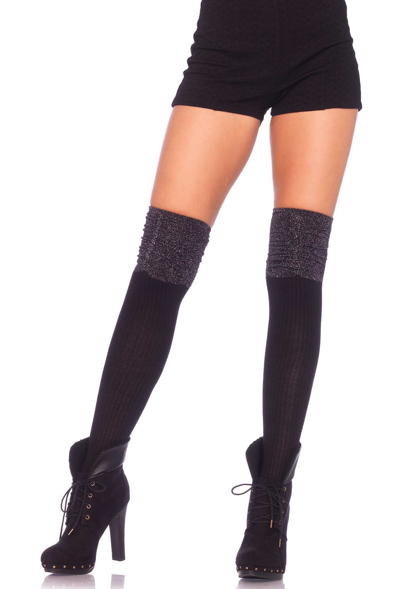 Секс шоп » Эротическое белье » Чулки/Колготки » Чулки » Чулки с блестящей отделкой Leg Avenue, One Size, Черно-серебряный