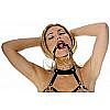 Кляп соединяется с зажимами с помощью двух металлических цепочек, которые натягиваются при повороте головы и усиливают ощущения. Открытый бюстгальтер бра, изображенный на коробке, не входит в комплект!