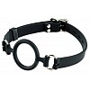 Кляп в виде открытого кольца на черном ремне, изготовленном из качественной кожи с элегантной строчкой (ширина ремня - 2 см) .