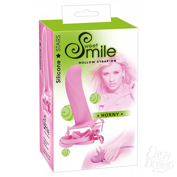 Секс шоп » Страпон » Комплекты с трусиками » Полый розовый страпон Horny на регулируемых ремешках - 16 см.