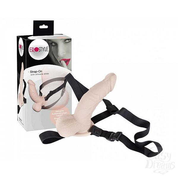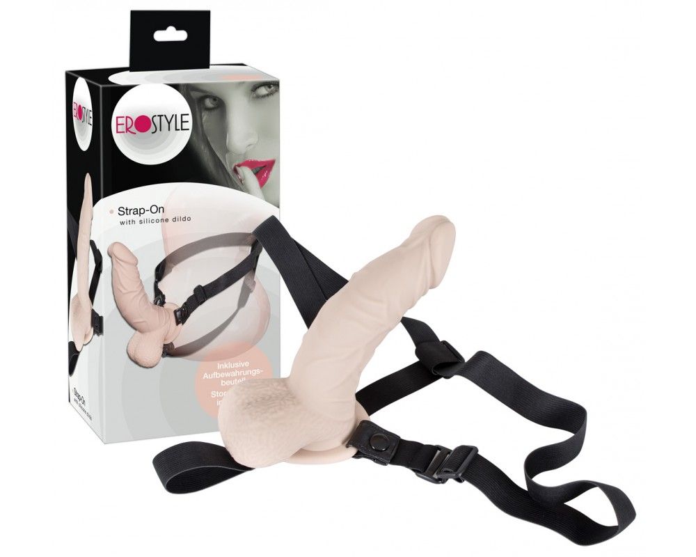 Секс шоп » Страпон » Комплекты с трусиками » Страпон EroStyle из силикона на отстёгивающихся ремнях - 19 см.